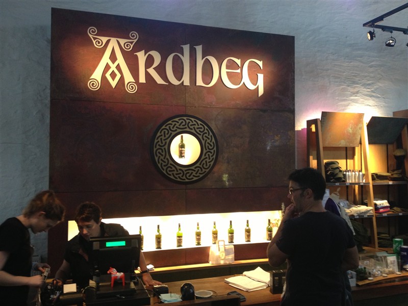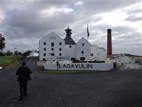 Vi tar snart bilen bort mot de tre stora destillerierna. Stannar till en snabbis på Laphroaig för de av oss som inte varit där förut (Håkan och Jocke). Köper lite glas och tittar runt samt känner oss som värsta japaner med kameran i högsta hugg. Rattar sedan några hundra meter bort till Lagavulin där vi snabbt och lätt snackar in oss i rummet som vi vet finns bakom shopen. Där bjuds vi på årets utgåva av Islay Festival samt även av förra årets (vilket skedde av misstag då tjejen i baren inte hade koll på flaskorna) samt även Lagavulin Jazz Festival bottling. Mycket goda whiskies och förutom glas även här slank det med flera stycken av nämnda utgåvor.