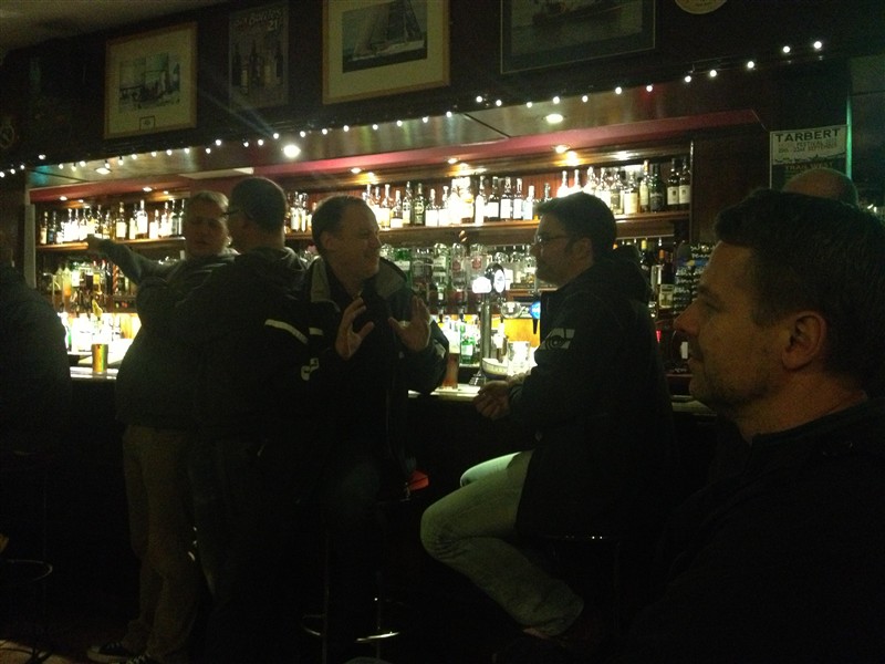 Efter en god middag på The Village Rest i Luss vid Loch Lomond svängde vi några timmar senare in i Tarbert och förvåningen var stor. Hade vi kört rätt utan missöden denna gång? Jepp!! Tre tidigare försök hade vi upplevt allvarliga GPS-problem. Vi skyller alltid på GPS:en för övrigt. In med väskorna hos Donald på Springside B&B. £30 pund var. Ut på byn och inmundiga lite öl på den lokala krogen där storbildsteven är påslagen och visar Milan-Celtic. En härlig start på resan!