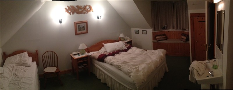Nöjda och glada checkade vi in hos Kate på Meadowside B&B. Återigen ett trevligt välkomnande och vi högg samma sängar som senast. Nästan i alla fall. Marcus och Mats fick sova hos grannen men frukosten intogs tillsammans. Senare på kvällen åt vi en bit mat på Lochside Hotel och avslutade i vanligt ordning kvällen på Duffy's pub med vår vän darttavlan. Killer stod återigen på menyn. Flera vinnare men Peter F tog nog ledningen....