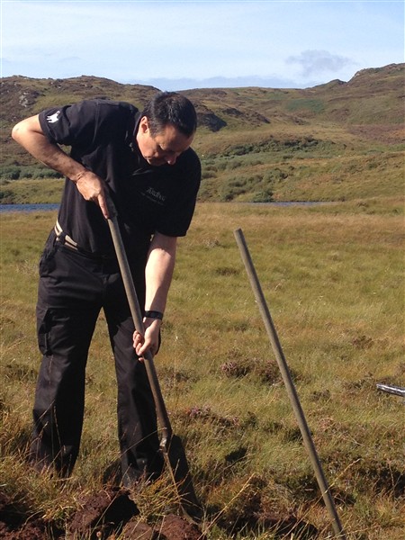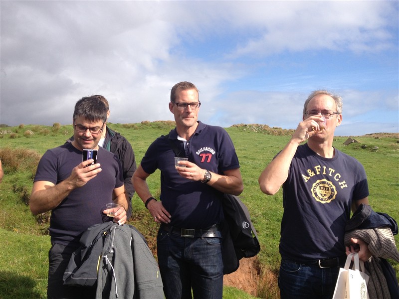 Ytterligare några hundra meter bort ligger Ardbeg. Skottlands vackraste :-) Här ska vi gå en Bog Off tour med Dougie kl 11. Detta visar sig bli resans höjdpunkt. Vi traskar iväg ut på hedarna, möter fåren och bara njuter. Efter en stund stannar Dougie och korkar upp turens första dram. En Still Young. Berättar samtidigt historien bakom den samt kryddar med historia om ön Islay. Turen fortsätter på detta tema. Dougie bjuder på Almost There, Reinassance, Ardbeg Day samt Ardbog samtidigt som han ger oss en kraftig historielektion om Islay, om dess kultur, histora och dess Lorder. En väldigt trevligt anordnad tur som inte alls var Ardbeginriktad utan handlade till allra största delen om Islay. Vi fick även prova på att skära lite torv samt inta lunchen vid en av Ardbegs två vattenkällor Airig Nam Beist och den andra är Loch Uigeadail. Här fick vi även hämta lite vatten direkt ur dammen och låta oss väl smaka. Himmelriket var i alla fall för undertecknad mycket nära nu. För att prata whiskyspråk så var detta en 100 poängare just i denna stund.