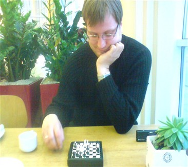 Dagen efter blev inte riktigt som beräknad dock. Vi styrde kosan till Fredrikshamn för att ta båten till Göteborg vid 15-tiden och den visade sig vara inställd. Hur slår man ihjäl 5 timmar en söndag i Fredrikshamn. Jo man köper ett litet schack, sätter sig på den enda öppna stället och spelar!!