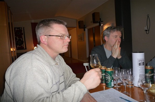 Klubben styrde riktningen till Kållered och hem till Mats A. Han bjöd på god mat, lite öl och trevlig samvaro en stund innan det var dags att landsätta dagens provning. Med facit i hand var alla nöjda med blandningen han åstadkommit, mycket olika typer av whisky och en spretig (i positiv bemärkelse) inriktning. Stort tack Mats!