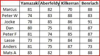 Närvarande var Marcus, Peter W, Jocke, Dan, Peter F, Anders, Mats A och Lasse. Innan provningen meddelade undertecknad att Roger i år har för avsikt att kliva ur klubben och vara passiv ett tag. Enligt klubbens stadgar är han dock välkommen tillbaka närhelst han själv önskar. Dan däremot som varit passiv några år och gästspelat under sista året gick i andra riktningen och är numera fullvärdig medlem igen. Skönt att lämna hang-around träsket bakom sig ;)